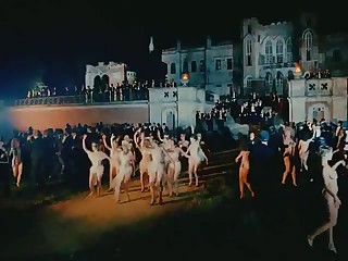 Красивый танец голых девиц возле роскошного замка